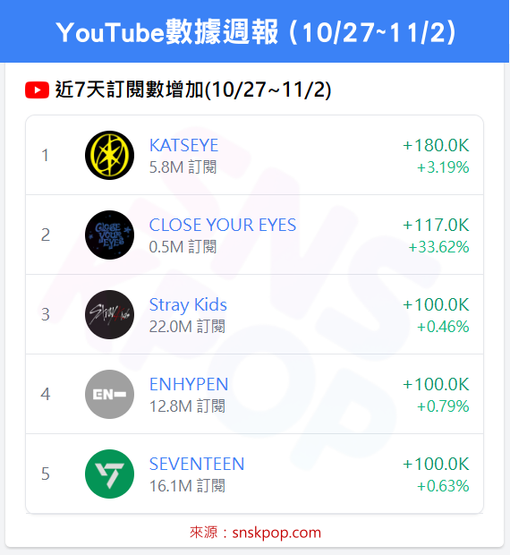 ➡️ CLOSE YOUR EYES +11.7萬爆發增長名列第二!💥