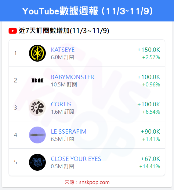 ➡️ BABYMONSTER、CORTIS +10萬並列第二!💯