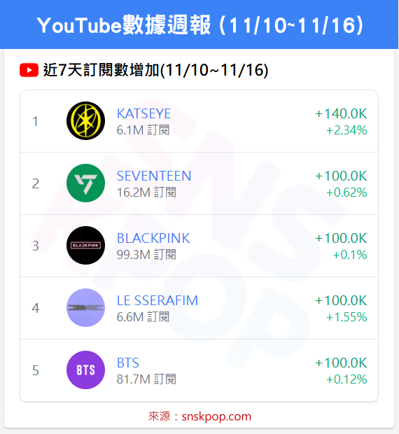 ➡️ SEVENTEEN、BLACKPINK、LE SSERAFIM、BTS +10萬並列第二!💜