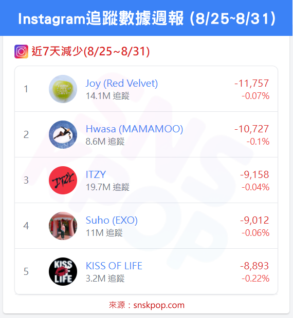 📊 IG追蹤數據週報 (8/25~8/31)-KATSEYE終結柾國六連冠紀錄