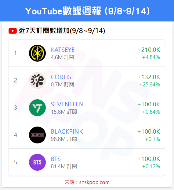 📊 YouTube數據週報 (9/8~9/14)- KATSEYE雙榜稱霸!🔥